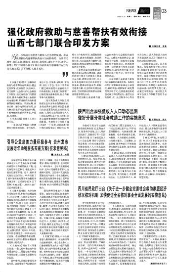強(qiáng)化政府救助與慈善幫扶有效銜接 山西七部門(mén)聯(lián)合印發(fā)方案