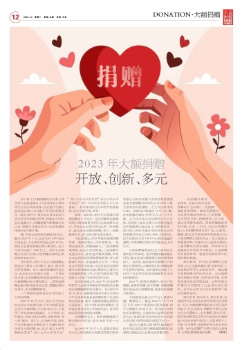 近年來,以大額捐贈的形式參與并支持公益慈善事業(yè),已成為財富人群和責任企業(yè)的共同選擇,也是更好發(fā)揮公益慈善在第三次分配中作用的重要途徑??v觀2023年,更多企業(yè)及企業(yè)家以更加開放和創(chuàng)新的思維,積極參與到社會公益事業(yè)中,捐贈規(guī)模不斷刷新歷史記錄,捐贈方式更加多元,關(guān)注領(lǐng)域和持續(xù)時間不斷擴展。 據(jù)《中國企業(yè)慈善發(fā)展報告》顯示,截至2023年6月,全國共有1359家企業(yè)基金會,占全國所有基金會的14.5%;我國企業(yè)慈善捐贈總額不斷增長,近幾年來均突破了1000億元,歷年企業(yè)捐贈占全國可以統(tǒng)計的捐贈總額的比例穩(wěn)定在60%左右。 分析指出,2023年企業(yè)大額捐贈主要流向了教育、鄉(xiāng)村振興、救災、醫(yī)療和科研等領(lǐng)域。其中,教育領(lǐng)域始終是企業(yè)、企業(yè)家關(guān)注的重中之重。一個突出特點是,校友捐贈始終是高校獲得社會大額捐贈的最主要來源之一,呈現(xiàn)出捐贈金額不斷突破歷史記錄、捐贈持續(xù)時間更長、多次捐贈等特征。 一個典型的案例是段永平向浙江大學的捐贈。 2023年12月31日,浙江大學杰出校友段永平再度向浙江大學教育基金會進行大額捐贈,合計超10億元,主要用于學?;A(chǔ)設(shè)施建設(shè)、人才培養(yǎng)、學科建設(shè)、師生文體活動等,支持學校“雙一流”建設(shè)。事實上,自2006年起,段永平在母校建設(shè)發(fā)展的各個關(guān)鍵階段多次進行大額捐贈,如,設(shè)立“浙江大學等額配比基金”“浙江大學永平貸學金”“浙江大學永平獎學金”“浙江大學永平獎教金”“浙江大學信電學院人才引進基金”,支持建設(shè)浙江大學圖書館基礎(chǔ)館、段永平教學樓,等等。 值得一提的是,2023年應(yīng)急救災領(lǐng)域捐贈也十分突出。在京津冀等地強降雨及甘肅省臨夏州積石山縣地震災害中,多家企業(yè)尤其民營企業(yè)第一時間響應(yīng),通過現(xiàn)金及物資捐贈、參與一線救援等形式,助力受災群眾渡過難關(guān)。 與此前相比,2023年救災領(lǐng)域捐贈呈現(xiàn)一些新的特點,具體表現(xiàn)為:一是響應(yīng)速度快,捐贈規(guī)模大;二是捐贈領(lǐng)域明確,關(guān)注點更加聚焦;三是捐贈方式愈加多元,除資金和物資捐贈,多家企業(yè)還利用其資源和網(wǎng)絡(luò)優(yōu)勢,參與到救援行動中,如滴滴和京東等,一些企業(yè)還利用技術(shù)優(yōu)勢,為災區(qū)提供遠程的技術(shù)支持和解決方案,幫助災區(qū)進行災后重建和恢復工作;四是與政府部門緊密配合,形成了良好的協(xié)作關(guān)系。 在傳統(tǒng)領(lǐng)域之外,2023年,社會各界對醫(yī)療衛(wèi)生及體育事業(yè)等領(lǐng)域的關(guān)注程度及捐贈規(guī)模均有所提升。如,2023年12月23日,安踏集團宣布未來五年將向中華全國體育基金會捐贈價值1億元的現(xiàn)金和裝備,成立“安踏集團奧運領(lǐng)獎臺公益基金”,助力中國競技體育事業(yè),支持基層體育及青少年體育發(fā)展,并為傷病運動員提供救助與保障。 在捐贈形式上,股權(quán)捐贈規(guī)模不斷突破歷史紀錄,成為2023年的一大亮點。 如,2023年12月4日,迎駕貢酒發(fā)布公告,稱控股股東安徽迎駕集團股份有限公司擬向安徽六安市迎駕慈善基金會無償捐贈其持有的公司1950萬股無限售條件流通股,占公司總股本的2.44%,按照當日收盤價71.75元計算,此次捐贈市值達13.99億元;12月5日晚,芯片設(shè)計龍頭韋爾股份發(fā)布公告稱,為資助寧波東方理工大學教育基金會開展慈善公益活動,公司控股股東一致行動人紹興韋豪計劃向該基金會無償捐贈其持有公司的1000萬股股權(quán),以韋爾股份當日105.19元/股的收盤價測算,該筆捐贈當前對應(yīng)市值高達10.5億元。 長期捐贈規(guī)劃是社會公益事業(yè)發(fā)展和進步的體現(xiàn)。更多捐贈者越來越認識到,解決社會問題需要長期的承諾和投入。也因此,越來越多的捐贈人開始制定長期規(guī)劃,以確保他們的捐贈能夠產(chǎn)生持續(xù)的影響。這種趨勢也反映了人們對于社會責任的深刻理解和對未來的積極期待。 2023年,除股權(quán)捐贈外,知識產(chǎn)權(quán)捐贈、經(jīng)營權(quán)捐贈、技術(shù)捐贈、資源捐贈等非現(xiàn)金形式捐贈頻現(xiàn),慈善信托規(guī)模不斷增長。 全國慈善信息公開平臺(慈善中國)數(shù)據(jù)顯示,截至2023年12月19日,已有1602個慈善信托項目備案,財產(chǎn)總規(guī)模達65.38億元。作為既可發(fā)揮信托本源特色,又能參與公益事業(yè)的服務(wù)方式,慈善信托已成為信托行業(yè)在新分類背景下轉(zhuǎn)型發(fā)展的重要方向之一。 透過以上數(shù)據(jù),我們看到,越來越多的中國企業(yè)家正將巨額財富捐贈到社會領(lǐng)域,助推社會公益事業(yè)高質(zhì)量發(fā)展: 一是捐贈決策更加理性,注重發(fā)揮自身優(yōu)勢解決社會問題;二是捐贈戰(zhàn)略更加明晰,制定長期規(guī)劃并系統(tǒng)實施成為常態(tài);三是捐贈方式更加多樣,捐贈股權(quán)、設(shè)立慈善信托等蔚然成風;四是捐贈額度更加可觀,億元、十億元、百億元捐贈出現(xiàn);五是捐贈領(lǐng)域更加廣闊,從教育、健康、救災逐步延展到各類慈善活動;六是捐贈執(zhí)行更加專業(yè),成立基金會等慈善組織、實施專業(yè)公益成為潮流;七是