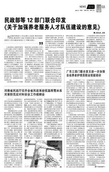 民政部等12部門聯(lián)合印發(fā)《關(guān)于加強養(yǎng)老服務(wù)人才隊伍建設(shè)的意見》