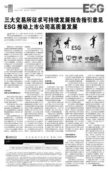 三大交易所征求可持續(xù)發(fā)展報(bào)告指引意見 ESG推動(dòng)上市公司高質(zhì)量發(fā)展