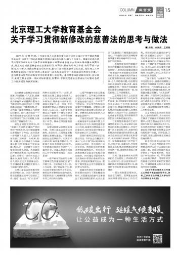 北京理工大學(xué)教育基金會(huì)關(guān)于學(xué)習(xí)貫徹新修改的慈善法的思考與做法