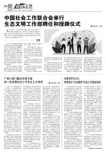 中國社會工作聯(lián)合會舉行生態(tài)文明工作部聘任和授牌儀式