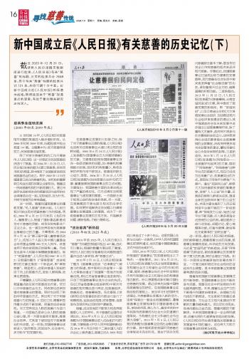 新中國成立后《人民日報(bào)》有關(guān)慈善的歷史記憶(下)