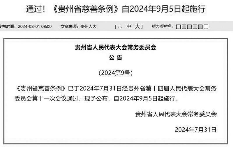 ■ 本報記者 皮磊 7月31日,《貴州省慈善條例》經(jīng)貴州省第十四屆人民代表大會常務委員會第十一次會議通過,自2024年9月5日起施行。條例共35條,其中明確,自然人、法人和非法人組織在貴州省行政區(qū)域內(nèi)開展慈善活動以及與慈善有關的活動,適用本條例。 該條例明確了慈善事業(yè)的定位,并規(guī)定了政府相關部門各自職責。其中第四條規(guī)定,縣級以上人民政府應當將慈善事業(yè)納入國民經(jīng)濟和社會發(fā)展規(guī)劃,建立健全慈善工作協(xié)調(diào)機制,統(tǒng)籌解決慈善工作中的重大問題,支持慈善事業(yè)發(fā)展。 第五條規(guī)定,縣級以上人民政府民政部門主管本行政區(qū)域內(nèi)的慈善工作;其他有關部門在各自職責范圍內(nèi)做好慈善相關工作,加強對慈善活動的監(jiān)督、管理和服務;慈善組織有業(yè)務主管單位的,業(yè)務主管單位應當對其進行指導、監(jiān)督。鄉(xiāng)鎮(zhèn)人民政府、街道辦事處應當協(xié)助民政部門和其他有關部門做好本轄區(qū)內(nèi)的慈善相關工作。村民委員會、居民委員會在有關政府職能部門的指導下,依法參與慈善工作。 為加強慈善文化宣傳,該條例提出,每年9月5日“中華慈善日”所在周為“貴州慈善周”,集中開展慈善活動和文化宣傳等。省設立“貴州慈善獎”;市州、縣級人民政府根據(jù)國家和省有關規(guī)定對在慈善事業(yè)發(fā)展中做出突出貢獻的自然人、法人和非法人組織予以表彰。 條例明確,縣級以上人民政府及其有關部門和單位可采取下列措施,引導、支持慈善事業(yè)發(fā)展: 一、依法落實對慈善組織、捐贈人、受益人的稅費優(yōu)惠政策,為慈善組織、捐贈人等辦理涉稅事項提供服務便利; 二、依法通過購買服務等方式,支持符合條件的慈善組織向社會提供服務; 三、鼓勵和支持通過孵化培育、人員培訓、公益創(chuàng)投、項目指導等方式,為慈善組織提供資金支持和能力建設服務; 四、鼓勵慈善組織依法興辦非營利性的醫(yī)療、教育、養(yǎng)老、托幼、助殘、應急救援、生態(tài)環(huán)境保護、心理健康等方面的社會服務機構,其所興辦的學校教學和學生生活、養(yǎng)老服務機構、托育機構、殘疾人托養(yǎng)服務機構用電、用水、城鎮(zhèn)集中供熱享受居民價格政策,用氣價格按照國家和省的有關規(guī)定執(zhí)行; 五、鼓勵和支持有意愿有能力的自然人、法人和非法人組織通過設立基金會、慈善信托等積極參與慈善事業(yè); 六、法律、法規(guī)規(guī)定的其他措施。 記者注意到,該條例對慈善組織開展公開募捐活動、個人網(wǎng)絡求助等內(nèi)容也作出了具體規(guī)定。條例第十九條明確,個人因疾病、自然災害、意外事件或者其他原因?qū)е录彝ソ?jīng)濟困難向社會發(fā)布求助信息的,求助人、信息發(fā)布人應當對求助信息的真實性負責,不得以虛構事實、夸大困難等方式欺騙、誘導他人捐贈。個人求助信息應當在國務院民政部門指定的網(wǎng)絡服務平臺發(fā)布。 此外,條例對發(fā)展慈善事業(yè)也提出了一系列具體的鼓勵措施。如第二十七條規(guī)定,開展慈善捐贈、設立慈善信托的,依法免征實物、有價證券、股權等權利轉讓的行政事業(yè)性收費。促進慈善捐贈數(shù)據(jù)跨地區(qū)、跨部門共享和互信互認,優(yōu)化捐贈人稅前扣除流程。 第三十一條明確,鼓勵和支持金融、審計、評估、鑒定、公證、法律服務等機構,為捐贈人、慈善組織、慈善信托等提供專業(yè)服務,并按照規(guī)定減免相關服務費用。 |