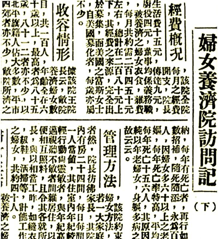 20世紀30年代,由于養(yǎng)老金和退休制度尚未普遍建立、戰(zhàn)爭及災害頻繁,北平市老年貧民的流離失所、孤苦無依逐漸成為一個社會問題。如果說以往對于老年貧民的社會救濟帶著濃厚的“施惠”“憐民”色彩,那么20世紀30年代的養(yǎng)老救濟則開始具備一定的政府責任意識。北平市社會局救濟院與民間力量發(fā)起的各種養(yǎng)老院所相輔相成,成為由傳統(tǒng)社會向現(xiàn)代福利社會轉(zhuǎn)型過程中社會養(yǎng)老救濟實踐不可或缺的參與主體。盡管由于受到社會歷史條件的局限,這一時期的養(yǎng)老救濟事業(yè)還存在著種種缺陷,但其對維持社會秩序、保障戰(zhàn)亂時的民生還是有一定的促進作用。 官辦救濟院成立殘老組 與此前主要以民間力量興辦的善堂善會為主的救濟設施構成相比,這一時期由北平市政府主導的救濟設施有所增多,同時面向孤寡老人和殘疾人等社會弱勢群體的救濟設施也開始趨于制度化。 一、殘老組及其養(yǎng)老設施 1934年6月1日,經(jīng)北平市政府批準,由原第一救濟院、第二救濟院、婦女救濟院、第一習藝工廠、第二習藝工廠、乞丐收容所等處改組成立北平市社會局救濟院,院址設于宣外教子胡同前第一救濟院舊址,由龔齊振任院長。其下設工務股、事務股、營業(yè)股,統(tǒng)一管理北京社會救助事務,成為北平市政府救濟機關正式建立的標志。1934年8月頒布的《北平市社會局救濟院章程》規(guī)定了救濟院救濟對象,即市內(nèi)貧苦殘老及無依之男女兒童暨不愿為娼之妓女與被虐待之婦孺等。同時,救濟院將前乞丐收容所改為殘老組和感化組,“以原來之第一救濟院改為北平市社會局救濟總所,附設收容部,收容部下之感化、殘老兩組,仍設燕翅樓乞丐收容所原址”,提出“其殘老者養(yǎng)之”,從而與其他救濟機構得以區(qū)分開來,管理開始趨于規(guī)范。 殘老組收養(yǎng)的老人,或無子女家人,或身體孱弱。為充實、方便老年人的生活,救濟院內(nèi)設教室、工作室、游戲場、寢室、食堂、浴室等生活設施。衣物上,收容老人衣著以蔽體、保暖、整潔為主。凡收容者,每年發(fā)給單、棉衣各一套,棉鞋、棉被各一雙(套),棉襪一雙;食物層面,則以能適合老年人咀嚼、果腹的清潔食物為主,并注意個別的營養(yǎng)。早餐有小米粥,午、晚兩餐為玉米面窩頭,佐以菜湯、咸菜。每周一、三、五早餐為白面饅頭,逢年節(jié)增肉食一餐。患病者可以大米、白面調(diào)攝。與此同時,除了涵蓋衣和食的“養(yǎng)”,“醫(yī)”也是老年救濟必不可少的要素。救濟院設有養(yǎng)病室,“每春夏兩季,為全體收容人員預防白喉、猩紅熱、霍亂等病注射,其有患重病及傳染者,分別送入市立、中央、協(xié)和、傳染等醫(yī)院免費診治”。此外,《北平市社會局救濟院章程》第二十一條規(guī)定,收容人死亡,由院通知其家屬備棺承領;其無家屬者,由院棺殮抬埋。“隨時電知第一股,然后由該股函請地方法院檢察處派員檢驗,發(fā)給執(zhí)照,購備棺木,飭役掩埋于本院墓地,樹立石碣”。 二、收養(yǎng)程序 查閱北京市檔案館現(xiàn)存資料可以發(fā)現(xiàn),孤苦無依的老年人經(jīng)由“社會局票交收容”“各區(qū)屬函送”“慈善團體介紹”“自投請求救濟”“家屬送請教養(yǎng)”五種渠道才可以進入社會局救濟院。在救濟收容程序上已具備了現(xiàn)代養(yǎng)老機構的特征和功能。 從北京市檔案館查閱的老年救濟申請書及批復的公函件材料來看,1938年1月至12月期間,被收容的老人主要以女性為主,年齡分布最低者是50歲,最長者為80歲?!白酝墩埱缶葷闭哂烧埻墩咦孕刑顚懮暾垥?,申請內(nèi)容與實際情況相符并由社會局派出巡官核驗合格后才能入救濟院。例如,巡官楊永志奉派調(diào)查崔董氏呈請赴救濟院收養(yǎng)一案,“遵即赴西城成方街西口外百子胡同五號系崔董氏之內(nèi)侄董乃溫之家寄居,調(diào)查該氏確系年老貧寒無力生活,情愿入院以求生活舖(鋪)保,亦核對相符理合呈報”?!案鲄^(qū)屬函送”則由警察局發(fā)送公函致社會局轉(zhuǎn)交救濟院,“內(nèi)一區(qū)警察署函送關(關)田氏年老無依請安置一案到局,訉據(jù)該氏供稱孤身一人,僅有外孫女婿英姓住抽屜胡同曾供給伊生活。現(xiàn)其停止供給無所依附,請安置?!逼渌樾卧诖瞬辉儋樖觥?br> 三、“教養(yǎng)并施,老有所安”的管理方式 一方面,“救人救徹”這一救助理念開始在政府行動中得到一定貫徹而非局限于以往單純發(fā)放衣物、貸款及開設粥廠和暖廠等此類臨時性的救助行動。如提出“救濟殘老,并不在提供衣食,使有所終,就算盡了最大的義務,乃是如何使‘殘而不廢’‘老有所安’”等等。 另一方面則是由過去的“重養(yǎng)輕教”逐漸轉(zhuǎn)向“教養(yǎng)并施”。救濟院一般向老年人提供有益身心健康的課程,并根據(jù)體質(zhì)情況設立操作室,實施技能調(diào)練,盡其所能予以生產(chǎn)操作,所得收益用以補助經(jīng)費和改善老人生活;與此同時,注重“因材施教”及“因人施助”;年老人員也不用接受文化教育,僅要求每日接受管理人員訓話,給予一定精神慰藉。對于因種種原因未能“懸鏡婚配”成功的婦女,令其學習一門技藝以便謀生:“年老、丑陋,擇配困難之婦女,現(xiàn)在收養(yǎng)者,為數(shù)亦不少,擬使彼等學