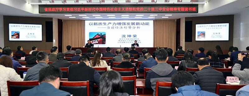 ■ 本報(bào)記者 李慶 記者從江蘇省民政廳官網(wǎng)獲悉,近日,江蘇省民政廳舉辦處級(jí)以上干部學(xué)習(xí)貫徹習(xí)近平新時(shí)代中國(guó)特色社會(huì)主義思想和黨的二十屆三中全會(huì)精神專題讀書(shū)班。廳黨組書(shū)記、廳長(zhǎng)謝曉軍作動(dòng)員講話。 會(huì)議指出,要提高政治站位,充分認(rèn)識(shí)學(xué)習(xí)貫徹全會(huì)精神的重要意義,進(jìn)一步深刻領(lǐng)悟“兩個(gè)確立”的決定性意義,增強(qiáng)“四個(gè)意識(shí)”、堅(jiān)定“四個(gè)自信”、做到“兩個(gè)維護(hù)”,持續(xù)興起學(xué)習(xí)貫徹三中全會(huì)精神的熱潮,堅(jiān)決把思想和行動(dòng)統(tǒng)一到黨中央和省委決策部署上來(lái),切實(shí)把所學(xué)、所思、所悟轉(zhuǎn)化為進(jìn)一步全面深化改革的實(shí)干、實(shí)績(jī)、實(shí)效。 會(huì)議強(qiáng)調(diào),要把握目標(biāo)要求,深刻學(xué)習(xí)領(lǐng)會(huì)三中全會(huì)的精神實(shí)質(zhì)和豐富內(nèi)涵,堅(jiān)定改革信心、強(qiáng)化改革責(zé)任、匯聚改革合力,緊密結(jié)合江蘇民政實(shí)際深入研究推動(dòng)改革工作,以釘釘子精神抓好改革落實(shí),努力取得更加扎實(shí)、更為明顯的改革成效,為助力譜寫(xiě)“強(qiáng)富美高”新江蘇現(xiàn)代化建設(shè)新篇章貢獻(xiàn)民政力量。 會(huì)議要求,堅(jiān)持學(xué)用結(jié)合,認(rèn)真謀劃貫徹全會(huì)精神的具體舉措,弘揚(yáng)優(yōu)良學(xué)風(fēng),全面系統(tǒng)學(xué)、深入思考學(xué)、聯(lián)系實(shí)際學(xué),著力克服學(xué)習(xí)上的形式主義,真正把全會(huì)精神學(xué)深悟透,切實(shí)在學(xué)思悟上下功夫見(jiàn)成效。要理論聯(lián)系實(shí)際,聚焦全省民政領(lǐng)域改革發(fā)展的痛點(diǎn)難點(diǎn)堵點(diǎn),謀劃貫徹全會(huì)精神的具體措施,探尋全面深化全省民政領(lǐng)域改革、助力中國(guó)式現(xiàn)代化江蘇新實(shí)踐的方案、路徑和模式,切實(shí)在知信行上下功夫見(jiàn)成效。 讀書(shū)班堅(jiān)持目標(biāo)導(dǎo)向、問(wèn)題導(dǎo)向和效果導(dǎo)向,靈活采取個(gè)人自學(xué)、集中領(lǐng)學(xué)、輔導(dǎo)授課、現(xiàn)場(chǎng)教學(xué)和交流研討等形式,組織參訓(xùn)人員深入學(xué)習(xí)領(lǐng)會(huì)黨的二十屆三中全會(huì)精神和習(xí)近平總書(shū)記關(guān)于全面深化改革的系列重要論述精神。先后邀請(qǐng)來(lái)自南京大學(xué)、國(guó)防大學(xué)、省委黨校等高校的教授,圍繞“以新質(zhì)生產(chǎn)力增強(qiáng)發(fā)展新動(dòng)能”“學(xué)習(xí)貫徹習(xí)近平關(guān)于全面深化改革的重要論述”“國(guó)際形勢(shì)和國(guó)家安全”“習(xí)近平文化思想”等主題作專題輔導(dǎo)授課。組織參訓(xùn)黨員、干部分批參觀南京市高新技術(shù)企業(yè)、開(kāi)展推進(jìn)“幸福民政365工程”實(shí)施調(diào)研成果交流。 廳領(lǐng)導(dǎo)班子成員、廳機(jī)關(guān)處級(jí)干部、廳直屬單位領(lǐng)導(dǎo)班子成員參加讀書(shū)班。廳機(jī)關(guān)科級(jí)以下干部參加讀書(shū)班集中授課。 |