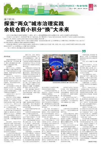 浙江杭州:探索“兩眾”城市治理實踐余杭倉前小積分“換”大未來