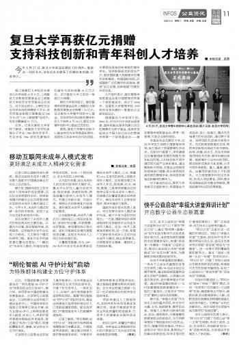 復(fù)旦大學(xué)再獲億元捐贈(zèng)支持科技創(chuàng)新和青年科創(chuàng)人才培養(yǎng)