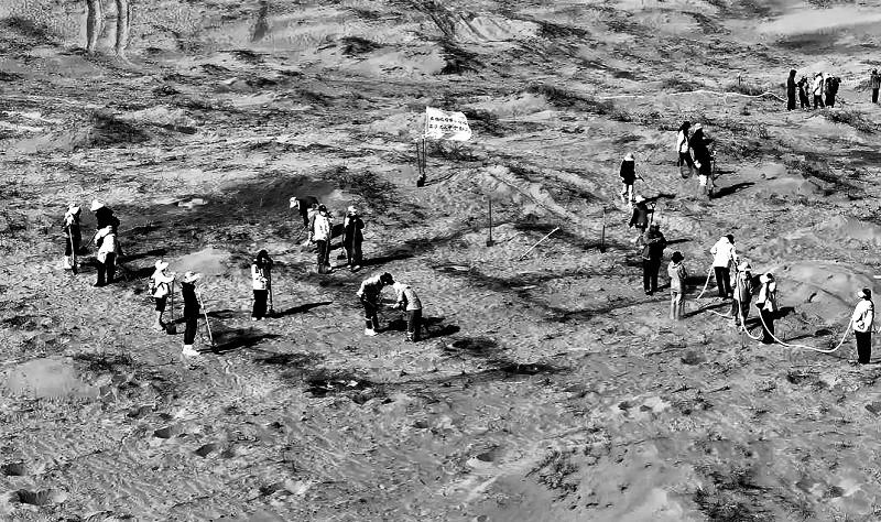 甘肅省民勤縣涌入一群年輕人。 民勤位于河西走廊東北部、石羊河流域下游,東西北三面被騰格里和巴丹吉林兩大沙漠包圍,是全國(guó)荒漠化、沙化最嚴(yán)重的縣區(qū)之一。 長(zhǎng)期以來(lái),民勤人在長(zhǎng)達(dá)408公里的風(fēng)沙線上種樹(shù)壓沙,建成300多公里的防護(hù)林帶。2014年至2019年,該縣荒漠化面 積 占 比 從 90.34%下 降 到88.18%。 如今,一句“歡迎到民勤種樹(shù)”,一群來(lái)自全國(guó)各地的志愿者,讓民勤被更多人看見(jiàn)。 種樹(shù) 早春,微風(fēng),氣溫回升,土壤解凍,草木已過(guò)休眠期,正是種樹(shù)的好時(shí)節(jié)。 在民勤縣收成鎮(zhèn)興隆村東南方向的騰格里沙漠邊緣,記者看到打坑車在沙地里走走停停,留下整齊的圓坑。志愿者們跟著打坑車上前補(bǔ)挖,一個(gè)個(gè)長(zhǎng)4米、寬2米的方格逐漸成型。 一個(gè)方格,就是一棵成年梭梭能固沙的大致范圍。40厘米左右深的種植坑挖好后,梭梭、花棒、檸條等抗風(fēng)沙的苗木被栽下,緊貼坑壁以防倒伏,接著是澆水、回填、壓土……一天下來(lái),又有100余畝沙地里“長(zhǎng)”出了樹(shù)苗,超過(guò)10個(gè)標(biāo)準(zhǔn)足球場(chǎng)的面積。 這是600多名志愿者一天的共同成果。他們來(lái)自全國(guó)各地,不少是90后、00后,有的已不是第一次來(lái)。 一群年輕人,為何扎進(jìn)沙漠種樹(shù)? 2024年春天播出的一檔綜藝節(jié)目讓民勤脆弱的生態(tài)環(huán)境和艱苦的治沙工作受到更多關(guān)注,陸續(xù)有人自發(fā)前來(lái)。同年11月,一名甘肅小伙喊出“歡迎到民勤種樹(shù)”。視頻在社交媒體上熱傳,網(wǎng)友紛紛留言響應(yīng)。“我們不是來(lái)追星的,這里沒(méi)有星,我們是來(lái)做事的。”來(lái)自蘇州的白春瑤說(shuō),去年第一次來(lái)民勤,確實(shí)是受偶像影響,但自從踏上這片土地,看到風(fēng)沙里的梭梭,她想的只是怎么把種樹(shù)這件事做成。 今年再次來(lái)到這里,白春瑤成了小組長(zhǎng),負(fù)責(zé)為幾十人分工、講解要點(diǎn)。種樹(shù)期間,志愿者們有的住在夜間氣溫零下的帳篷、板房里,有的每天乘車從40公里外的縣城趕到沙漠,再扛著鐵鍬步行半小時(shí)前往種植區(qū),在日曬下挖坑、插苗、澆水?!按蠹叶己苷J(rèn)真地在做這件事。”許多細(xì)節(jié)讓白春瑤覺(jué)得“這事兒能成”:“比如種樹(shù)的順序,去年是由近到遠(yuǎn)種,我當(dāng)時(shí)就覺(jué)得,往遠(yuǎn)處走的時(shí)候,很容易踩到已經(jīng)種好的樹(shù),沒(méi)想到今年真的改了?!?br> 治沙 60厘米左右的梭梭樹(shù)苗,成年后能長(zhǎng)到3米以上,根系深入地下,牢牢鎖住沙土。 民勤位于騰格里和巴丹吉林兩大沙漠的夾縫之中,處于國(guó)家生態(tài)安全戰(zhàn)略格局中的“北方防沙帶”,是全國(guó)荒漠化、沙化最嚴(yán)重的縣區(qū)之一,當(dāng)?shù)厮赜小笆鼐派?,非灌不殖”之說(shuō)。 一部民勤志,半部治沙史。在這次的“種樹(shù)熱”背后,民勤人堅(jiān)持種樹(shù)壓沙已有多年,石述柱、范玲花等老一輩治沙人的故事廣為流傳。 網(wǎng)絡(luò)上民勤種樹(shù)的視頻下,常有人留言問(wèn)“怎么種,聯(lián)系誰(shuí)”?;貜?fù)中,“小仲哥”和“馬哥”被頻繁提起?!靶≈俑纭泵兄禀?,民勤縣西渠鎮(zhèn)人,是一名95后。和許多民勤人一樣,仲麟的童年記憶里總有漫天黃沙以及忙著種樹(shù)、制作擋風(fēng)墻的長(zhǎng)輩,“印象最深的一次,風(fēng)沙過(guò)境,天都是黑的?!?br> 大學(xué)時(shí),仲麟嘗試在老家種下500棵梭梭,但由于經(jīng)驗(yàn)不足,這批樹(shù)最終成活的寥寥可數(shù)。“沒(méi)有想的那么簡(jiǎn)單?!碑厴I(yè)前夕,仲麟再次回到民勤,作為志愿者參與春種。記錄數(shù)據(jù)、反復(fù)試驗(yàn),仲麟逐漸摸索出一套有效的種樹(shù)方法——樹(shù)苗種植深度在40厘米左右,順風(fēng)方向栽植。這樣種下的梭梭成活率能達(dá)到80%。 2023年,仲麟和十幾名村民在興隆村種下了300畝公益林,而后又將這里發(fā)展為仲麟生態(tài)公益林基地。2024年,5000多名志愿者在此參與種樹(shù)。 在距興隆村百余公里的四方墩生態(tài)林基地,記者見(jiàn)到了有相似經(jīng)歷的“馬哥”馬俊河。 80后馬俊河也是土生土長(zhǎng)的民勤人。2006年,在外工作的馬俊河聽(tīng)說(shuō)民勤綠洲未來(lái)可能會(huì)被兩大沙漠侵吞,便回到家鄉(xiāng),發(fā)起“拯救民勤志愿者綠洲行動(dòng)”。 2007年以來(lái),馬俊河組織志愿者在民勤種樹(shù),開(kāi)展生態(tài)治理,讓8萬(wàn)畝沙地披上了綠裝?!耙郧胺N下的第一批梭梭已經(jīng)有5米高了?!?br> “綠洲內(nèi)部道路沿線、村莊周邊的零星沙地治理,交給公益機(jī)構(gòu)和當(dāng)?shù)馗刹咳罕?。”民勤縣林草局工作人員介紹,多方努力下,民勤已經(jīng)形成了重點(diǎn)工程和社會(huì)力量結(jié)合的治沙格局,“青土湖、龍王廟、西大河等重點(diǎn)風(fēng)沙口治理主要依托國(guó)家‘三北’工程?!?br> 近年來(lái),民勤“沙進(jìn)人退”的態(tài)勢(shì)得到遏制,408公里的風(fēng)沙線上建成了300多公里的防護(hù)林帶。干涸了50多年的青土湖也逐漸恢復(fù)水域面積,2024年達(dá)到27.65平方公里。 可持續(xù) “多的時(shí)候,每天有七八百人來(lái)到基地?!?br> 截至今年5月中旬,