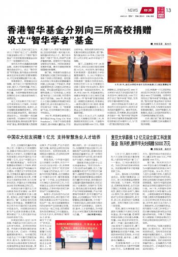 香港智華基金分別向三所高校捐贈設(shè)立“智華學(xué)者”基金