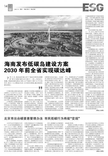 海南發(fā)布低碳島建設(shè)方案2030年前全省實(shí)現(xiàn)碳達(dá)峰