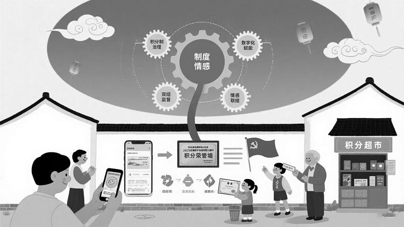 安徽省蚌埠市固鎮(zhèn)縣九灣居積極開展積分制治理實(shí)踐,開發(fā)數(shù)字化小程序,實(shí)現(xiàn)積分申報(bào)、審核、公示信息化,方便村民參與和監(jiān)督;探索“一引領(lǐng)、二助力、五步工作法”的治理模式,優(yōu)化治理流程;設(shè)立評議組和監(jiān)督組,保障積分評定公平公正;將情感融入制度,增強(qiáng)了村民的歸屬感與認(rèn)同感,積分制柔軟不失溫度。九灣居的積分制治理特色鮮明,成效顯著,被評為2023年第三批全國鄉(xiāng)村治理示范村。 九灣居積分制治理進(jìn)程 在鄉(xiāng)村振興戰(zhàn)略穩(wěn)步推進(jìn)的大背景下,安徽省蚌埠市固鎮(zhèn)縣劉集鎮(zhèn)九灣居于2023年3月起推動(dòng)積分制治理,其治理進(jìn)程可分為三個(gè)階段:一是2023年3月至8月的學(xué)習(xí)試點(diǎn)階段,二是2023年8月開始的數(shù)字化轉(zhuǎn)型階段,三是數(shù)字化轉(zhuǎn)型成功后的鞏固、推廣階段。九灣居持續(xù)創(chuàng)新治理實(shí)踐,逐步構(gòu)建起一套兼具制度理性與情感柔性的“一引領(lǐng)、二助力、五步工作法”積分制治理工作方法,為鄉(xiāng)村治理能力與治理體系現(xiàn)代化建設(shè)提供寶貴經(jīng)驗(yàn)?!耙灰I(lǐng)”是指強(qiáng)化黨建核心引領(lǐng),構(gòu)建黨委領(lǐng)頭、黨支部牽頭、黨員帶頭的組織架構(gòu)。具體來說,黨委統(tǒng)籌積分制發(fā)展方向,黨支部扎根基層細(xì)化工作,黨員以身作則帶動(dòng)村民,增強(qiáng)村民對積分制的認(rèn)同感和參與感,為積分制推行奠定了堅(jiān)實(shí)的情感基礎(chǔ)?!岸Α笔侵改鄱嘣卫砹α?,村集體經(jīng)濟(jì)和村民自治組織雙重助力,提供治理保障。具體而言,村兩委成立積分制監(jiān)督組和評議組保證積分工作公平公正,村集體經(jīng)濟(jì)為積分兌換提供物質(zhì)支持,村民自治組織從下至上參與治理、反饋意見,產(chǎn)生情感驅(qū)動(dòng)。“五步工作法”是指優(yōu)化治理流程,通過劃分網(wǎng)格、建立清單、提供資金、數(shù)字賦能和建檔立制等五步驟,規(guī)范積分制治理流程,強(qiáng)化治理效能。 更為重要的是,九灣居創(chuàng)新性地將情感治理嵌入積分制全流程,使積分制治理從單純依靠制度約束拓展為激勵(lì)引導(dǎo)式治理。首先,作為“哪吒鬧海”神話發(fā)源地之一,九灣居深度挖掘當(dāng)?shù)貎?yōu)秀傳統(tǒng)文化,基于文化共鳴助推積分制治理。其次,推動(dòng)情感融入,將社會(huì)關(guān)系型指標(biāo)納入量化體系,使村民“私利”和村社“公利”緊密相連,助推鄉(xiāng)村社會(huì)關(guān)系網(wǎng)絡(luò)從原子化狀態(tài)向有機(jī)聯(lián)結(jié)轉(zhuǎn)變,實(shí)現(xiàn)“積分存折”與“情感賬戶”的同步增值。再次,以積分制為抓手進(jìn)行情感拓展,基于網(wǎng)格化和數(shù)字化治理,將技術(shù)理性與人情因素耦合。最后,構(gòu)建以精神獎(jiǎng)勵(lì)為主、物質(zhì)獎(jiǎng)勵(lì)為輔的正向反饋機(jī)制,激發(fā)村民參與積分制治理的內(nèi)生動(dòng)力。 積分制治理運(yùn)行機(jī)制 積分制治理運(yùn)行過程中,九灣居在組織、制度、情感三維協(xié)同發(fā)力,促進(jìn)情感治理嵌入積分制治理,其運(yùn)行機(jī)制可概括為認(rèn)同參與機(jī)制、組織調(diào)整機(jī)制和情感嵌入機(jī)制等三大機(jī)制。 一是認(rèn)同參與機(jī)制。九灣居積分制治理實(shí)踐充分激發(fā)了村民的利益認(rèn)同、政策認(rèn)同、政治認(rèn)同,從而激發(fā)了村民參與村務(wù)治理內(nèi)生力量。在利益認(rèn)同層面,九灣居以獎(jiǎng)懲過程和資源保障為著力點(diǎn),構(gòu)建集體利益和個(gè)人利益協(xié)同共生機(jī)制。通過“積分超市”的物質(zhì)獎(jiǎng)勵(lì)和改善基礎(chǔ)設(shè)施等公共事務(wù)處理相結(jié)合,將村民追求個(gè)人積分的“私利”行為轉(zhuǎn)化為維護(hù)村社公序良俗的集體行動(dòng),實(shí)現(xiàn)了私人利益與公共利益的有機(jī)統(tǒng)一。在政策認(rèn)同層面,九灣居在制度設(shè)計(jì)、實(shí)施推廣、監(jiān)督評議等環(huán)節(jié)吸納村民全過程參與,通過公開透明的治理流程,使村民在參與中理解并認(rèn)可積分制,完成從被動(dòng)管理對象到主動(dòng)參與者的政治心理跨越。政治認(rèn)同層面則通過黨建引領(lǐng)“三治融合”治理體系,構(gòu)建黨員主聯(lián)、黨群共治的格局,強(qiáng)化村民對村莊的認(rèn)同感和歸屬感,使積分制成為黨建引領(lǐng)鄉(xiāng)村治理的有效載體。 二是組織調(diào)整機(jī)制。九灣居積分制治理實(shí)踐通過權(quán)力結(jié)構(gòu)優(yōu)化與治理流程再造,實(shí)現(xiàn)了制度約束與現(xiàn)實(shí)靈活性的動(dòng)態(tài)平衡。穩(wěn)定的組織結(jié)構(gòu)是積分制長效運(yùn)行的硬性支撐。九灣居通過“黨委領(lǐng)頭、支部牽頭、黨員帶頭”的黨建引領(lǐng)架構(gòu),成立積分制工作領(lǐng)導(dǎo)小組、評議組和監(jiān)督組,構(gòu)建起“鎮(zhèn)-村-網(wǎng)格-戶”四級(jí)聯(lián)動(dòng)體系,為積分制運(yùn)行奠定組織基礎(chǔ)。九灣居還強(qiáng)調(diào)多主體共同參與,積極引入第三方社會(huì)力量,為鄉(xiāng)村治理注入新的資源與活力。此外,九灣居還通過積分流程的可視化運(yùn)行——積分制細(xì)