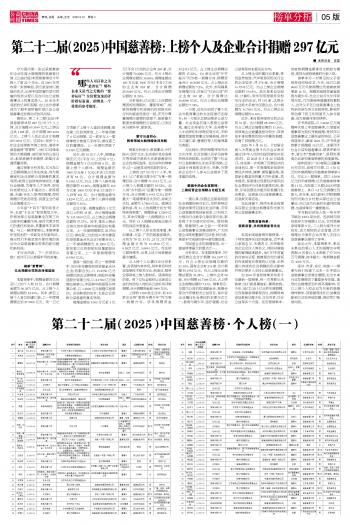 第二十二屆(2025)中國慈善榜:上榜個(gè)人及企業(yè)合計(jì)捐贈(zèng)297億元