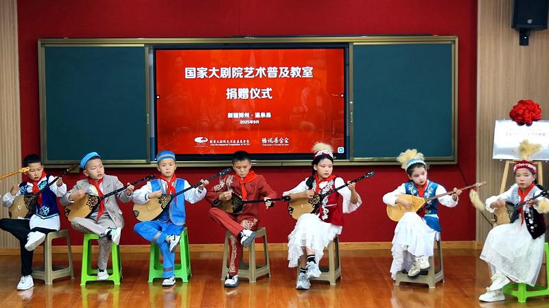 國家大劇院藝術(shù)普及教室,采用“線下空間改造+線上資源賦能”的立體幫扶模式,以“小空間”激活“大文化”,既是首都連接邊遠(yuǎn)地區(qū)的“美育橋梁”,也是國家大劇院在邊遠(yuǎn)地區(qū)的“美育陣地”。 ■ 本報(bào)記者 高文興 在祖國邊陲,新疆的西北端,坐落著這樣一個(gè)與哈薩克斯坦共和國接壤的小城——博爾塔拉蒙古自治州溫泉縣。這片僅有7萬多人口的靜謐之地,其三面被高聳入云的連綿雪山所包圍,像是被巨人藏入懷抱的一顆稀世之珍,驚艷動(dòng)人,卻隱秘地不為外界察覺。 9月中旬的晚上,溫泉縣已倍感寒意,至21時(shí),漫長的白日卻才舍得向這里做最后告別。然而,一片雷鳴般的掌聲和歡呼又陡然劃破這天山腳下的寧靜,一場國家級頂尖水準(zhǔn)的歌舞盛宴此時(shí)拉開帷幕——在新疆維吾爾自治區(qū)成立70周年之際,國家大劇院藝術(shù)發(fā)展基金會(huì)為溫泉縣帶來的藝術(shù)火種,正烘托著這顆邊陲明珠釋放其更加璀璨的光芒。 “藝術(shù)普及教室”落地溫泉 助力多民族文化永葆活力 溫泉縣城位于海拔1700米的博格達(dá)爾山的山腳下,博格達(dá)爾在蒙語中意為“神山的背后”。雖然地處遙遠(yuǎn),但千年來,在這座神山的注視下,漢族、蒙古族、哈薩克族、維吾爾族等多民族共同譜寫出了一曲曲世代傳唱的動(dòng)人歌謠,當(dāng)?shù)氐拿晒抛宥陶{(diào)更從大山背后傳出,成為了國家級的“非遺”代表性項(xiàng)目。 9月17日,國家大劇院藝術(shù)發(fā)展基金會(huì)攜國家大劇院歌唱家遠(yuǎn)赴溫泉縣,與溫泉縣烏蘭牧騎展開交流,為草原輕騎兵捐贈(zèng)樂器,并與他們聯(lián)手為當(dāng)?shù)匕傩辗瞰I(xiàn)了兩臺高水準(zhǔn)的演出,將最優(yōu)質(zhì)的文化資源送抵祖國的邊境線。 于是,便有了文章開頭的一幕——千余名當(dāng)?shù)匕傩赵谝归g涌進(jìn)溫泉縣文化中心劇場,他們的熱情激發(fā)出了演員們的高水準(zhǔn)表演,將晚會(huì)推向一個(gè)又一個(gè)高潮。 巴音巴特已經(jīng)是溫泉縣烏蘭牧騎第五任隊(duì)長,當(dāng)天,他全程參與了和大劇院歌唱家的交流以及同臺演出,他在演出后接受《公益時(shí)報(bào)》記者采訪時(shí)表示,在過去,烏蘭牧騎的創(chuàng)作和演出條件艱苦,經(jīng)常“以天為幕布,以地為舞臺”,這次國家大劇院帶來的樂器有鋼琴、二胡、三弦等,“豐富了我們的樂器品種,讓演員的創(chuàng)作、表演和舞蹈編曲更上一個(gè)臺階。國家大劇院藝術(shù)家與基層藝術(shù)團(tuán)隊(duì)的深入交流,也讓我們受益匪淺,他們千里迢迢的到來讓我們深切感受到了來自祖國的溫暖?!?br> 溫泉縣烏蘭牧騎生生不息的傳承基因,必然與當(dāng)?shù)孛耖g世代熏陶和培養(yǎng)密不可分,而小學(xué)基礎(chǔ)教育則是將藝術(shù)種子進(jìn)行集中播撒的關(guān)鍵階段。鑒于此,國家大劇院團(tuán)隊(duì)本次新疆溫泉之行的“重頭戲”,則是為溫泉縣城鎮(zhèn)小學(xué)精心打造一間“藝術(shù)普及教室”。 據(jù)了解,溫泉縣城鎮(zhèn)小學(xué)是當(dāng)?shù)匾蛔兄凭脷v史和美育教育傳統(tǒng)的學(xué)校,目前在校學(xué)生1052名,其中90%為少數(shù)民族。校長王麗娜表示,學(xué)校配備了6間音樂教室和4名音樂教師,基本滿足教學(xué)需求,但面對孩子們更高的藝術(shù)渴求,在樂器等基礎(chǔ)設(shè)備上還難以滿足。 而新落成的“藝術(shù)普及教室”中,教學(xué)一體機(jī)、音響、鋼琴、合唱臺等先進(jìn)硬件設(shè)施一應(yīng)俱全,師生們還可以通過線上課堂來獲取更多的教材和音視頻。9月18日上午,在“藝術(shù)普及教室”捐贈(zèng)儀式過后,城鎮(zhèn)小學(xué)的學(xué)生們表演了蒙古舞蹈《吉祥的筷子》、蒙古短調(diào)《察哈爾八旗》、維吾爾族舞蹈《快樂的童年》、冬不拉合奏《我的伙伴》、鋼琴演奏《噴泉》等精彩節(jié)目,展現(xiàn)了多民族文化的交融與活力。 此次隨隊(duì)前來的國家大劇院藝術(shù)家金鄭建、胡越,在驚嘆于小小年紀(jì)的孩子們有如此藝術(shù)天賦之余,分別為學(xué)校的社團(tuán)學(xué)生指導(dǎo)演唱《祖國在我心窩里》《盧溝謠》,并為他們上了一場生動(dòng)的“藝術(shù)第一課”。 看到孩子們在藝術(shù)家的啟發(fā)下被激發(fā)出的求知欲和表現(xiàn)力,校長王麗娜感慨地說道:“其實(shí)不是我們的孩子不行,而是我們原來缺少這樣高水平的師資。通過初期課程和藝術(shù)家的指導(dǎo),我們的孩子進(jìn)步很快,對發(fā)聲技巧、節(jié)奏把控和個(gè)人展示都有很大的提升。我們非常感謝,希望有更多這樣高水平的專家來到我們這個(gè)邊陲小城,為更多渴望通往藝術(shù)殿堂的孩子提供指導(dǎo)?!?br> 國家大劇院創(chuàng)公益新舉 立體扶持鄉(xiāng)村美育陣地 而此次掛牌落成的“藝術(shù)普及教室”已是國家大劇院藝術(shù)發(fā)展基金會(huì)在全國打造的第五間教室。 據(jù)了解,國家大劇院藝術(shù)發(fā)展基金會(huì)成立于2022年年底,基金會(huì)以“資助文化藝術(shù)公益項(xiàng)目”為主,圍繞國家大劇院“人民性、藝術(shù)性、國際性”三項(xiàng)宗旨,構(gòu)建了全民美育、藝術(shù)資助和藝術(shù)交流三大項(xiàng)目體系。 “藝術(shù)普及教室”是2024年基金會(huì)創(chuàng)新開展的公益項(xiàng)目之一