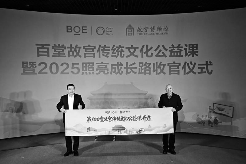 近日,BOE(京東方)“百堂故宮傳統(tǒng)文化公益課”暨2025照亮成長(zhǎng)路收官儀式在故宮博物院舉行。故宮博物院是BOE(京東方)“照亮成長(zhǎng)路”公益項(xiàng)目的重要合作伙伴,雙方自2023年攜手啟動(dòng)“百堂故宮傳統(tǒng)文化公益課”項(xiàng)目,依托BOE(京東方)智慧教育解決方案與數(shù)字技術(shù)弘揚(yáng)中華優(yōu)秀傳統(tǒng)文化,不僅為偏遠(yuǎn)地區(qū)教育高質(zhì)量發(fā)展注入科技活力,還憑借數(shù)字化形式推動(dòng)文化傳承,展現(xiàn)傳統(tǒng)文化歷久彌新的獨(dú)特魅力。 該項(xiàng)目于云南省保山市啟動(dòng),歷時(shí)兩年已走進(jìn)包括陜西西鄉(xiāng)、山西婁煩、四川理塘、青海玉樹(shù)在內(nèi)的多地近40所學(xué)校,線上線下累計(jì)惠及學(xué)生超過(guò)兩萬(wàn)名,持續(xù)推動(dòng)“科技+教育+文化”的可持續(xù)發(fā)展,切實(shí)幫助偏遠(yuǎn)地區(qū)學(xué)生獲得近距離感受中華傳統(tǒng)文化魅力的教育機(jī)會(huì)。 活動(dòng)現(xiàn)場(chǎng),故宮博物院院長(zhǎng)王旭東,故宮博物院副院長(zhǎng)朱鴻文,中國(guó)鄉(xiāng)村發(fā)展基金會(huì)副秘書(shū)長(zhǎng)丁亞冬,京東方科技集團(tuán)CEO馮強(qiáng),京東方科技集團(tuán)副總裁、首席人事官李洋,京東方科技集團(tuán)副總裁、首席品牌官司達(dá)等嘉賓,以及曾參與項(xiàng)目課程的五所學(xué)校20名師生代表齊聚一堂,共同見(jiàn)證這一重要時(shí)刻,并展望科技賦能文化傳承與青少年教育的未來(lái)新篇。 朱鴻文在致辭中表示,“故宮博物院和京東方科技集團(tuán)都是深耕各自領(lǐng)域的實(shí)踐者,我們擁有推動(dòng)文化教育發(fā)展的多元化優(yōu)勢(shì)——企業(yè)有技術(shù)賦能的能力,文化單位有內(nèi)容資源的厚度。我們通過(guò)‘文化+科技’的雙重賦能,帶領(lǐng)邊遠(yuǎn)地區(qū)的孩子們?cè)谥腔壅n堂上觸摸歷史脈搏,跨越時(shí)間和空間的限制,近距離感受故宮承載的中華優(yōu)秀傳統(tǒng)文化的獨(dú)特魅力?!?br> 李洋在致辭中表示,“京東方‘照亮成長(zhǎng)路’項(xiàng)目已走過(guò)十年,它已超越單一公益項(xiàng)目,成長(zhǎng)為一個(gè)開(kāi)放、多元、可持續(xù)的公益平臺(tái)。百堂課的收官不是終點(diǎn),而是一個(gè)嶄新的起點(diǎn)。我們期待更多優(yōu)秀的伙伴加入‘照亮成長(zhǎng)路’項(xiàng)目,共同以科技與文化之光,讓優(yōu)質(zhì)的教育資源突破時(shí)空限制,照亮更多孩子的成長(zhǎng)之路?!?br> 丁亞冬在致辭中表示,“京東方作為全球創(chuàng)新型物聯(lián)網(wǎng)公司和全球顯示產(chǎn)品龍頭企業(yè),積極履行社會(huì)責(zé)任,不僅提供公益資金捐贈(zèng),還以其全球領(lǐng)先的顯示技術(shù)和物聯(lián)網(wǎng)解決方案,為‘百堂故宮傳統(tǒng)文化公益課’提供了高質(zhì)量的傳輸與呈現(xiàn)保障?!?br> 儀式現(xiàn)場(chǎng),曾參與項(xiàng)目課程的五所學(xué)校師生代表帶著親手制作的紀(jì)念品依次登臺(tái)發(fā)言,表達(dá)對(duì)BOE(京東方)及故宮博物院的謝意。在儀式結(jié)尾,王旭東與馮強(qiáng)共同上臺(tái)展開(kāi)卷軸,標(biāo)志著第一百堂故宮傳統(tǒng)文化公益課開(kāi)啟,也為故宮博物院建院100周年這一重要?dú)v史時(shí)刻增添特殊的紀(jì)念意義。儀式結(jié)束后,故宮工作人員帶領(lǐng)學(xué)生走進(jìn)故宮,在充滿歷史底蘊(yùn)的宮殿中講述建筑與文物背后的文化故事,為孩子們帶來(lái)了意義非凡的第一百堂故宮文化課,沉浸式加深偏遠(yuǎn)地區(qū)孩童對(duì)中華優(yōu)秀傳統(tǒng)文化的認(rèn)識(shí)。 除了實(shí)地游覽故宮,BOE(京東方)還安排了豐富的研學(xué)活動(dòng),帶領(lǐng)師生們?cè)谕醺當(dāng)?shù)字藝術(shù)館與京東方歷史展覽館開(kāi)展研學(xué)。在數(shù)字藝術(shù)館,BOE(京東方)通過(guò)高清顯示與動(dòng)態(tài)影像技術(shù)打造出沉浸式文化場(chǎng)景,讓文物“活”起來(lái);在京東方歷史展覽館,孩子們則透過(guò)屏幕技術(shù)的演進(jìn),直觀感受到科技發(fā)展的創(chuàng)新力量。在領(lǐng)略科技賦能藝術(shù)魅力之余,BOE(京東方)還帶領(lǐng)師生們走進(jìn)北京的地標(biāo)性景區(qū),親身感受天安門廣場(chǎng)的莊嚴(yán)、頤和園的秀美、景山公園的遼闊。這場(chǎng)研學(xué)之旅,讓歷史與文明不再遙遠(yuǎn),讓文化變得可觸可感,助力孩子們收獲更為鮮活而深刻的文化體驗(yàn)。 依托“照亮成長(zhǎng)路”項(xiàng)目,BOE(京東方)搭建起跨越空間和距離的數(shù)字化平臺(tái),開(kāi)展10余年來(lái)已在10個(gè)省市建成156間智慧教室,累計(jì)受益師生超7萬(wàn)人,不僅讓偏遠(yuǎn)地區(qū)的孩子們沉浸式感受到文化和科技的力量,也通過(guò)豐富的研學(xué)活動(dòng),讓孩子們能夠跨越千里之遙來(lái)到祖國(guó)的心臟研學(xué),在心中埋下科技賦能文化的種子。這不僅標(biāo)志著“照亮成長(zhǎng)路”實(shí)現(xiàn)了從“硬件支持”到“內(nèi)容賦能”的深刻跨越,更是BOE(京東方)公益維度的重要升級(jí)。而“百堂故宮傳統(tǒng)文化公益課”的落地,也象征著B(niǎo)OE(京東方)“照亮成長(zhǎng)路”項(xiàng)目全新的開(kāi)始。 BOE(京東方)持續(xù)以技術(shù)突破賦能文化業(yè)態(tài)革新,讓