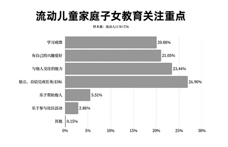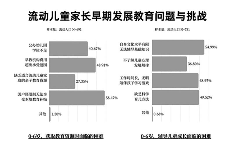 報告認(rèn)為,困境流動兒童家庭的境遇,并非個體悲劇或單一因素所致,而是宏觀制度結(jié)構(gòu)、中觀支持網(wǎng)絡(luò)與微觀生命事件在時間維度上動態(tài)交織、代際傳遞的系統(tǒng)性結(jié)果。 ■ 本報記者 王勇 流動兒童的自我身份認(rèn)同相對混亂和模糊。29.83%的流動兒童認(rèn)為自己“既是城市人又是農(nóng)村人”。24.33%認(rèn)為是“農(nóng)村人”,24.07%認(rèn)為是“流動人口”,13.57%認(rèn)為是“城市人”,8.19%表示“不清楚”。與此同時,77.06%的流動兒童家長、63.41%的流動兒童希望長期在城市發(fā)展。 上述數(shù)據(jù)來自《看見流動的童年——流動兒童及其家庭需求研究報告(2025)》(以下簡稱報告)。該報告由北京市協(xié)作者社會工作發(fā)展中心(以下簡稱“協(xié)作者”)在1月25日舉行的流動兒童及其家庭關(guān)愛服務(wù)創(chuàng)新沙龍上正式發(fā)布。 基于2025年對京津冀、長三角、珠三角及山東半島四個代表性城市776個流動兒童家庭與787個流動兒童的問卷調(diào)查,以及54個困境家庭的深度訪談,報告采用“兒童-家庭”雙重視角、“困境-普通”家庭對比視角,全面呈現(xiàn)了該群體在生計發(fā)展、身心健康、教育公平及社會支持四大核心維度的生存現(xiàn)狀與動態(tài)需求?!拔覀兿M@份報告及相關(guān)持續(xù)性的研究、服務(wù)行動,能為各方提供一個基于實證的、動態(tài)的觀察窗口,共同推動流動兒童關(guān)愛服務(wù)體系朝著更加精準(zhǔn)、系統(tǒng)、可持續(xù)的方向發(fā)展?!眳f(xié)作者主任李濤強(qiáng)調(diào)。 普遍面臨系統(tǒng)性壓力 報告顯示,流動兒童家庭普遍面臨生存與發(fā)展的系統(tǒng)性壓力,而困境家庭在各維度都承受著更為嚴(yán)峻的挑戰(zhàn)。 生計發(fā)展方面,流動兒童家庭面臨就業(yè)質(zhì)量低、收入不穩(wěn)定、經(jīng)濟(jì)緩沖能力弱及社會保障不足等多重挑戰(zhàn)。 流動兒童家長從事的職業(yè)以制造業(yè)普工、商販、打零工、保潔家政和服務(wù)員等勞動強(qiáng)度大、技術(shù)門檻低的崗位為主。17.53%的流動兒童家長屬于新業(yè)態(tài)勞動者,其工作是通過網(wǎng)絡(luò)平臺接單,如騎手、快遞員、賣菜平臺分揀員等。 流動兒童家長對工作滿意度一般。在滿意度的成因上,“可以兼顧照顧家庭”是最重要的因素,其次是“有社會保險”和“工作時間自由”。 值得一提的是,無論是男性流動兒童家長還是女性流動兒童家長,均將“可以兼顧家庭”作為工作滿意度的最主要的原因之一。這意味著對于流動兒童家長而言,家庭對其自我價值與成就感均是非常重要的考慮因素。 32.35%的家庭面臨收支失衡,支出超過收入,需通過調(diào)整開支或借助外部支持/借貸彌補(bǔ)缺口。49.23%的家庭在無收入時生活難以維持超過2個月,其中困境家庭在此項上的脆弱性更高。 與此同時,近九成家庭在現(xiàn)居城市有過搬家經(jīng)歷,超過半數(shù)曾搬家三次以上。43.03%的流動兒童因搬家“失去原來的好朋友,感到孤單”;27.64%則面臨“在新環(huán)境中交朋友困難”。 身心健康方面,流動兒童在成長發(fā)育的多個環(huán)節(jié)面臨系統(tǒng)性支持不足,而困境兒童面臨的挑戰(zhàn)更為嚴(yán)峻。流動兒童在營養(yǎng)攝入、飲食規(guī)律、健康問題及心理健康等方面存在不同程度的不足與風(fēng)險。 流動兒童家長的健康狀況也不容忽視。39.69%的家長從未做過體檢,未接受體檢的主要原因包括經(jīng)濟(jì)壓力大、認(rèn)為身體無大礙無需檢查以及缺乏時間。 60.82%的流動兒童家長經(jīng)確診患有疾病,“三高”(高血壓、高血脂、高膽固醇)、消化道疾病及慢性肌肉骨骼疾病是主要患病類型。這些疾病直接與多數(shù)流動兒童家長從事的高強(qiáng)度體力勞動、不規(guī)律的作息時間、高鹽高脂飲食以及長期久坐或重復(fù)性勞作的工作性質(zhì)密切相關(guān)。 當(dāng)身體不適時,63.89%的流動兒童家長首選自行處理,包括“根據(jù)過往經(jīng)驗到藥店買藥”“先硬扛著”或“自己先上網(wǎng)查詢”。選擇就醫(yī)機(jī)構(gòu)時,“醫(yī)療費(fèi)用更低”“距離更近”和“可以支持報銷”是三個最主要考量因素。 子女教育方面,流動兒童家庭面臨政策壁壘、信息不暢、家庭支持能力弱等挑戰(zhàn)。 在0-6歲早期發(fā)展階段,近九成家庭在獲取教育資源時面臨困難。主要障礙包括戶籍限制和經(jīng)濟(jì)壓力。在家庭養(yǎng)育方面,超過九成的家長面臨挑戰(zhàn),其中超過半數(shù)表示因自身文化水平有限,缺乏相關(guān)養(yǎng)育知識。 約半數(shù)流動兒童認(rèn)為父母“不太可以”或“完全不可以”輔導(dǎo)功課;而家長自評中,明確表示無法輔導(dǎo)的比例更高。 在學(xué)齡期兒童入學(xué)與升學(xué)方面,超過九成的流動兒童家長面臨挑戰(zhàn)。主要困境依然與戶籍相關(guān):70.54%的家長在辦理入學(xué)時需要滿足積分落戶或特定證件材料等附加條件;40.08%的家長因戶籍限制,子女在初高中升學(xué)階段只能選擇返回老家。 與通常想象不同,流動兒童家庭對子女教育的首要期待并非學(xué)業(yè)成績。排名前三的期待分別是:獨(dú)立自信完成任務(wù)/目標(biāo)、與他人交往的能力、有自己的興趣愛好,學(xué)習(xí)成績僅排在第四位?!