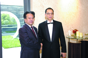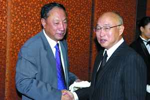 中國(guó)社會(huì)工作協(xié)會(huì)會(huì)長(zhǎng)徐瑞新(左)與財(cái)務(wù)部原部長(zhǎng)項(xiàng)懷誠(chéng)