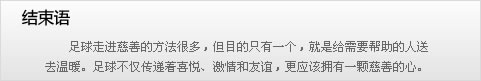 | 前世界足球先生,葡萄牙球星路易斯菲戈除了球技出眾之外,還有一顆善良的心,以他自己的名字命名的基金會(huì)就是明證。路易斯菲戈基金會(huì)的宗旨是向貧困和殘疾青少年提供幫助和發(fā)展機(jī)會(huì)。 |