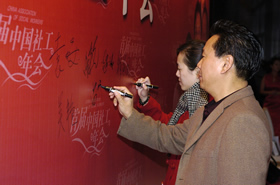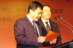 中國社工協(xié)會常務(wù)副會長楊建昌致祝酒辭 中國社工協(xié)會副會長兼秘書長趙蓬奇宣讀榮譽(yù)會員名單 司馬義·艾買提與劉京共同為北京啟動世紀(jì)愛晚(北京)