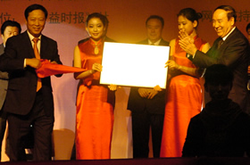 司馬義·艾買提與劉京共同為北京啟動世紀(jì)愛晚(北京)置業(yè)有限公司揭牌